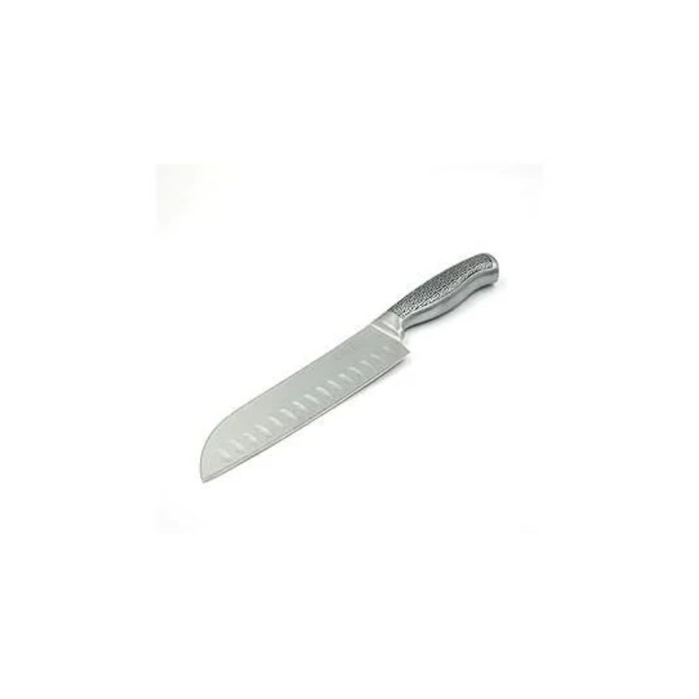 7 Inch Santoku Knife, High Carbon Stainless Steel Blade with Sleek Hollow Stainless Steel Handle, Precision Granton Edge for Chopping, Slicing, and Mincing, Stylish and Durable Kitchen Essential