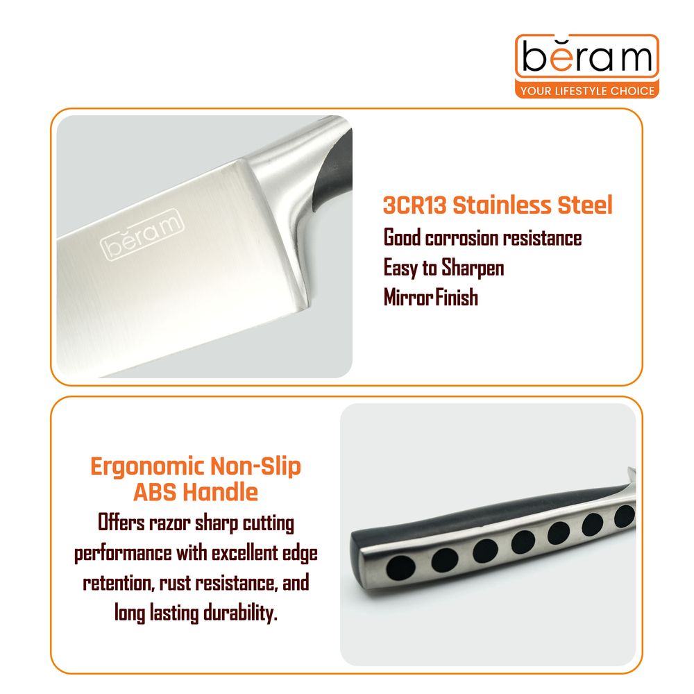 BERAM 8 Inch Professional Chef Knife with ABS Handle 3CR13 Stainless Steel Blade Garnishing Knives Daily Use Sharp Edge Multipurpose Cooking Knife for Chopping Slicing Mincing