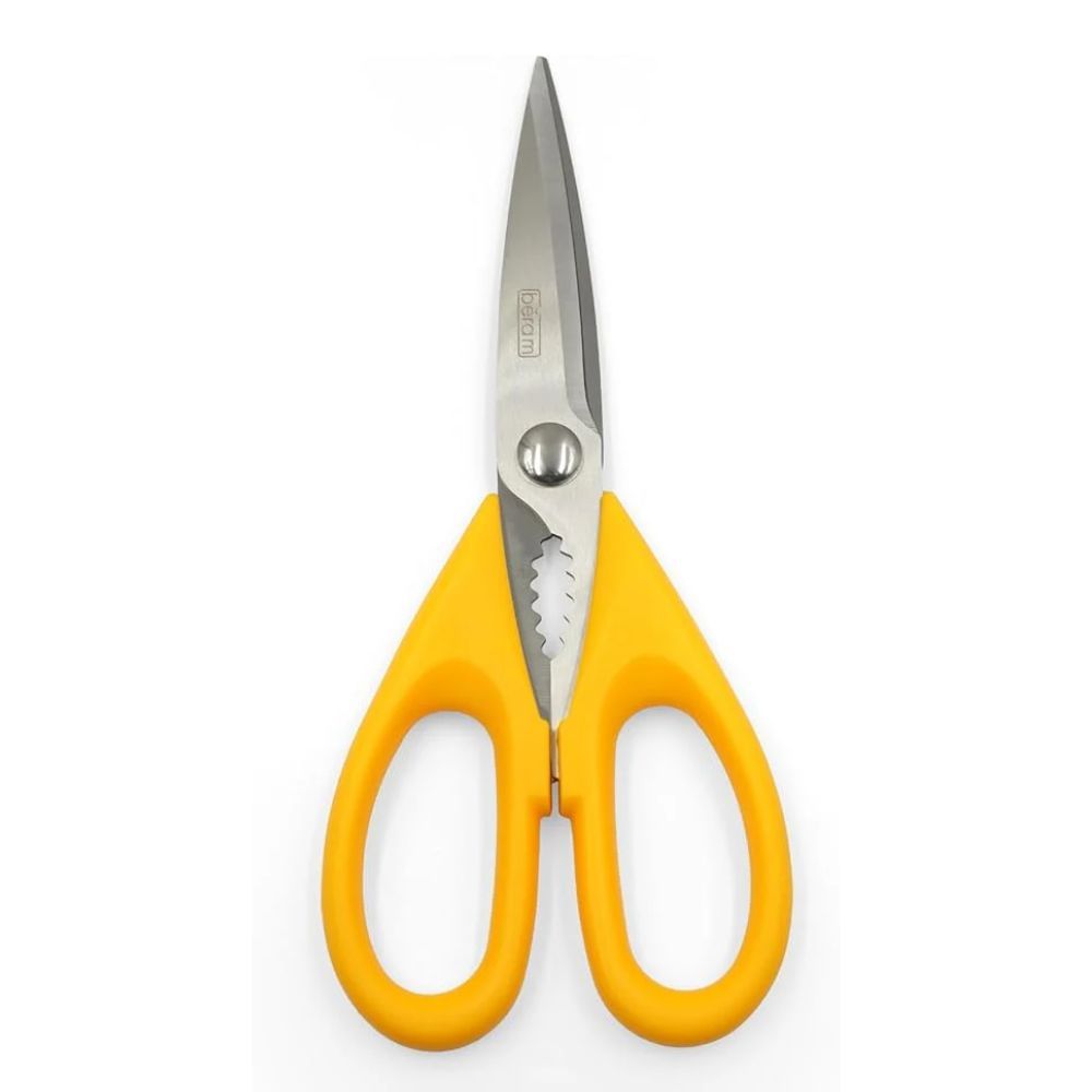 Upgrade your kitchen tools with the Beram 9-Inch Yellow Handle Kitchen Scissors with Nutcracker