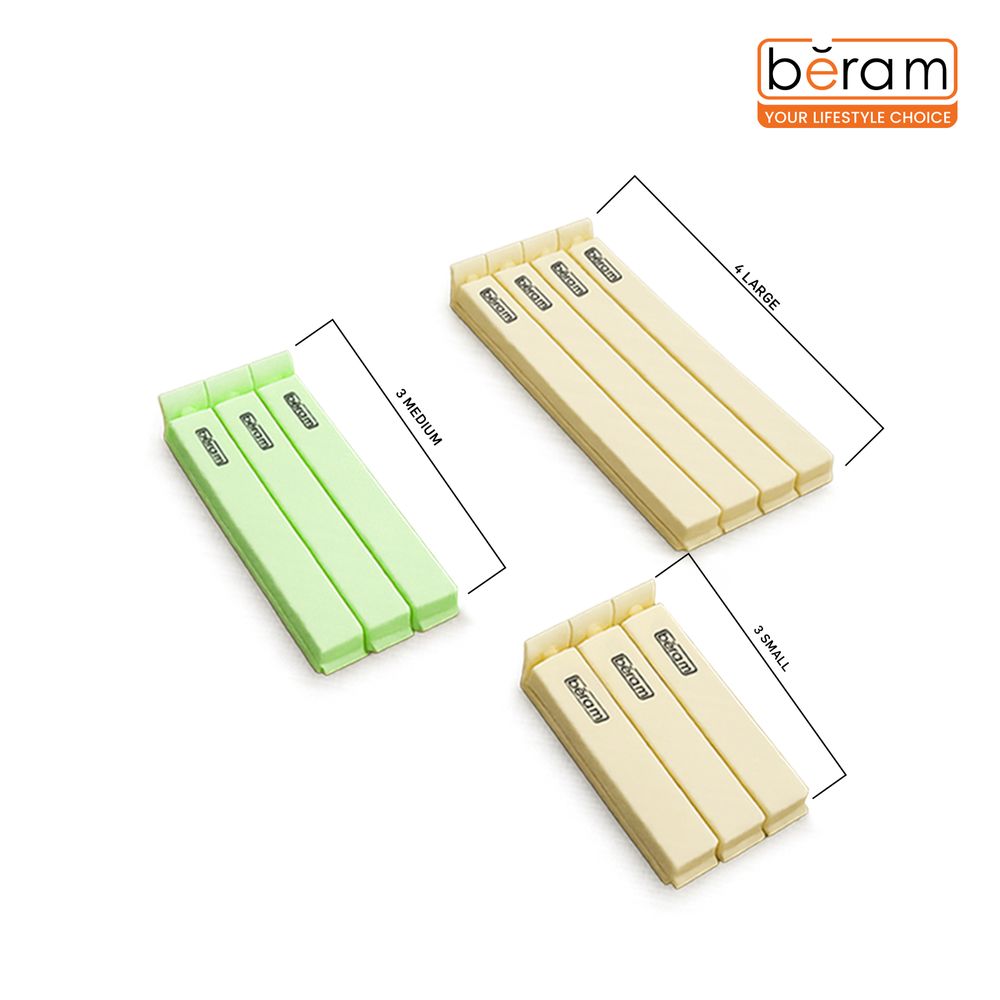 Cook with confidence using the 270°C heat-resistant silicone cooking tongs, made with 18/8 stainless steel and non-stick silicone tips that protect cookware while offering secure, non-slip gripping for flipping, frying, grilling, and serving. Keep your snacks fresh with the 10-piece airtight sealing clip set, featuring three sizes in beige and green for aesthetic and practical food storage.