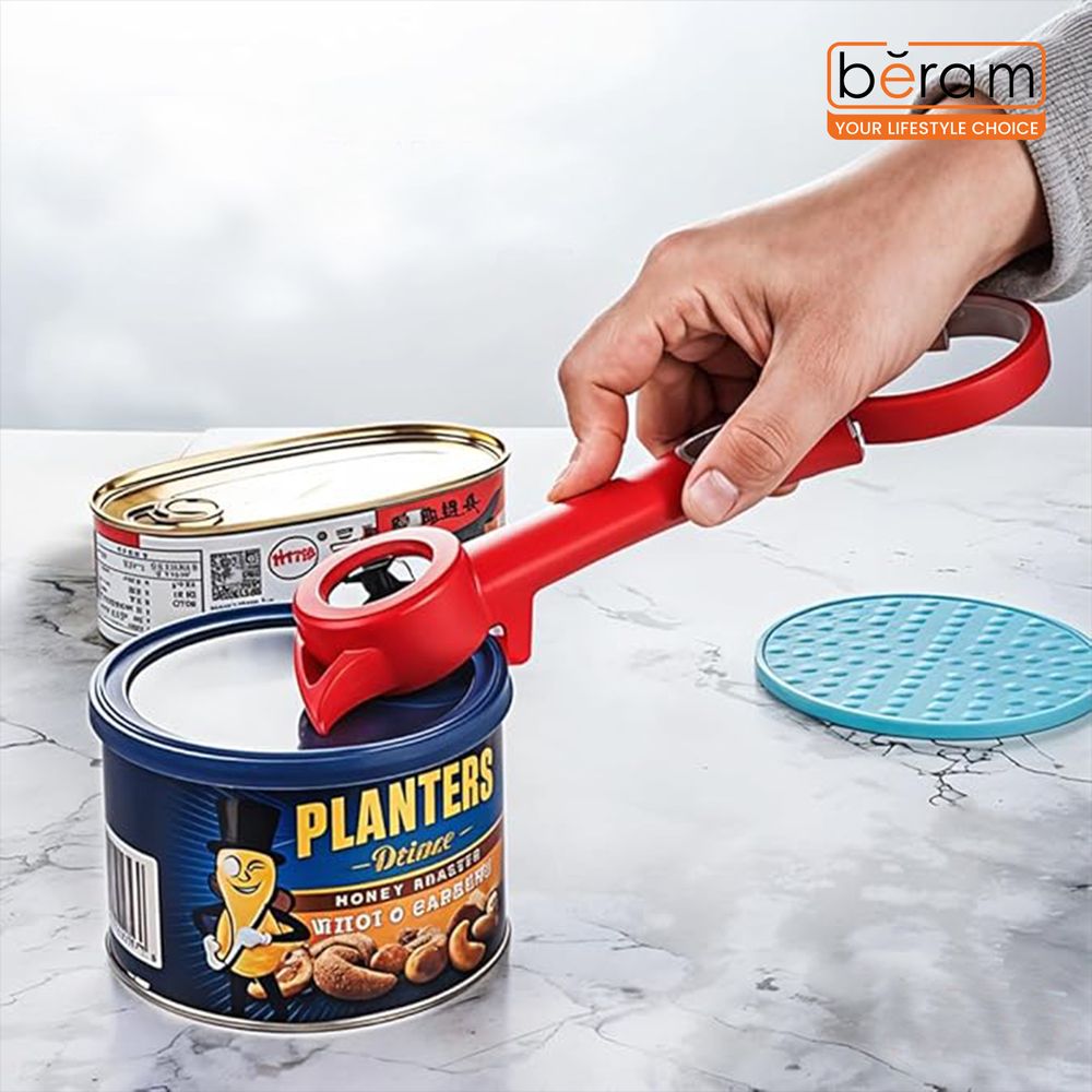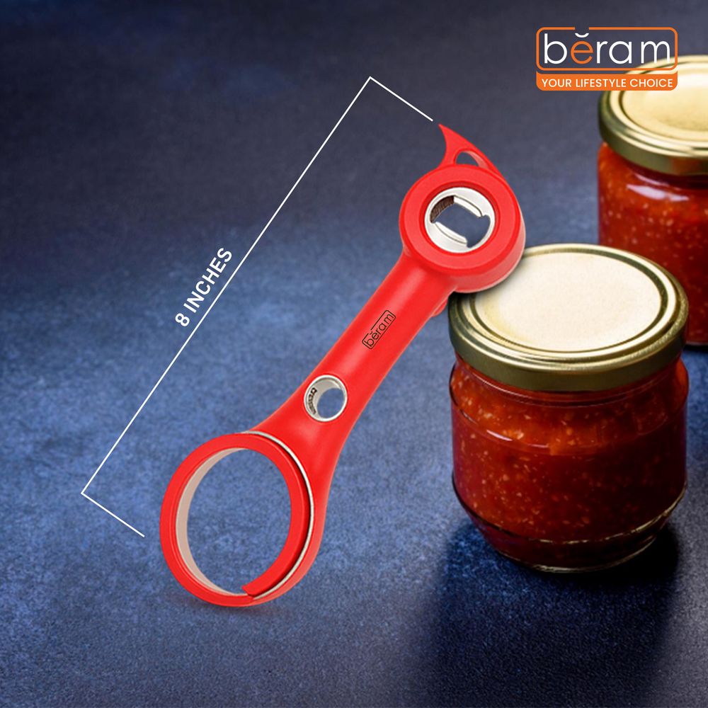 Open jars, bottles, pull tabs, twist caps, and safety seals effortlessly with the BERAM 6-in-1 Multiopener, designed with a non-slip rubberized handle ideal for weak hands and seniors. For slicing perfection, the 4.5-inch serrated steak knife offers exceptional sharpness with a 3CR13 stainless-steel blade and an ergonomic SS430+ABS handle.