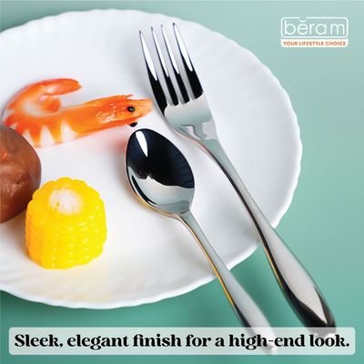 The product Beram Eternal Forge 304 Stainless Steel Cutlery Set of 24 Pieces images have props used for illustrative purposes. Product Color may vary slightly due to photographic lighting or your screen settings.