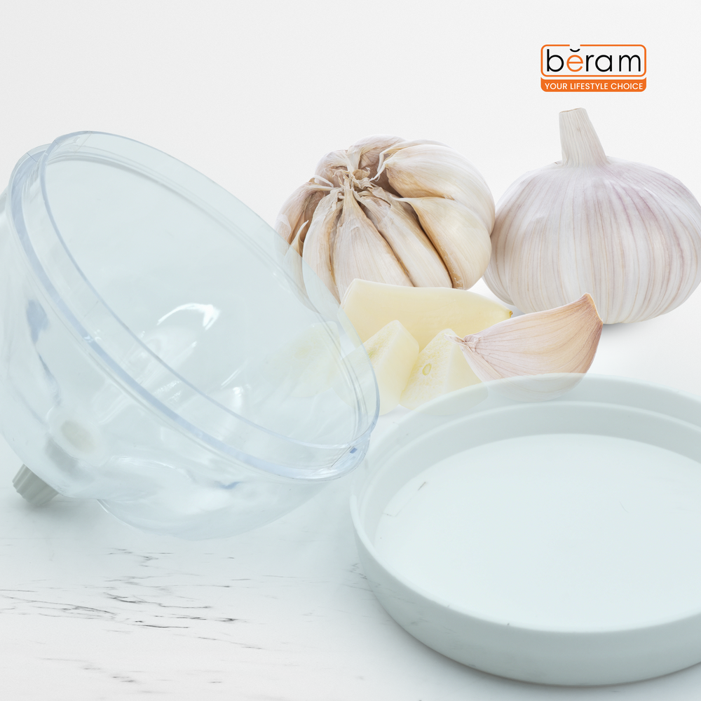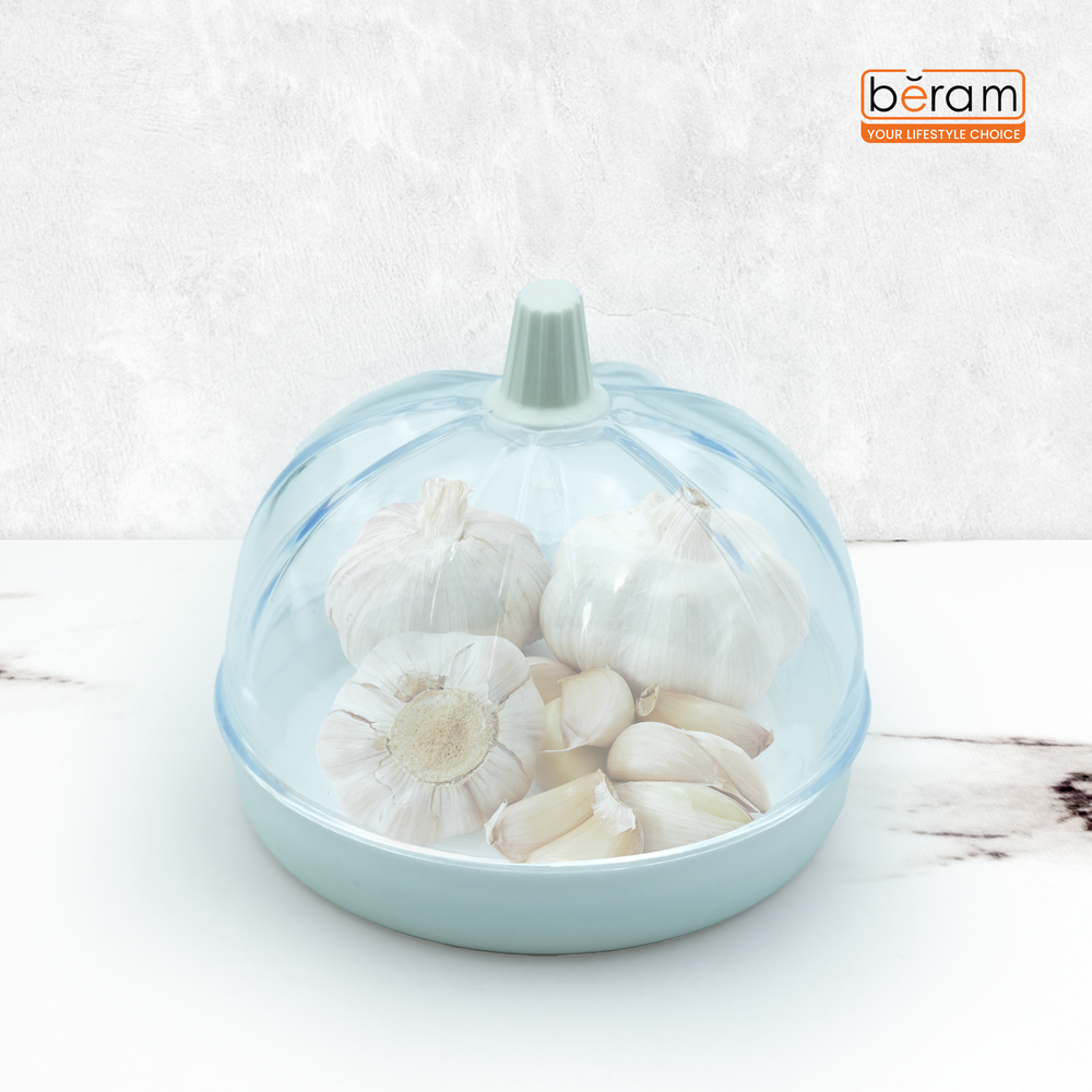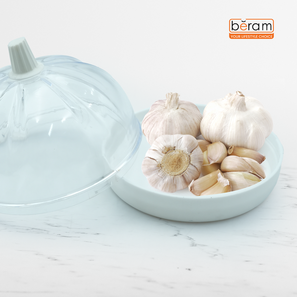 Beram Garlic Container, BPA-Free Plastic Storage Keeper with Airtight Lid, 9.5 x 8.2 x 9.5 cm, Reusable Fridge Organizer for Garlic Bulbs & Cloves, Compact, Odor-Control, Dishwasher Safe