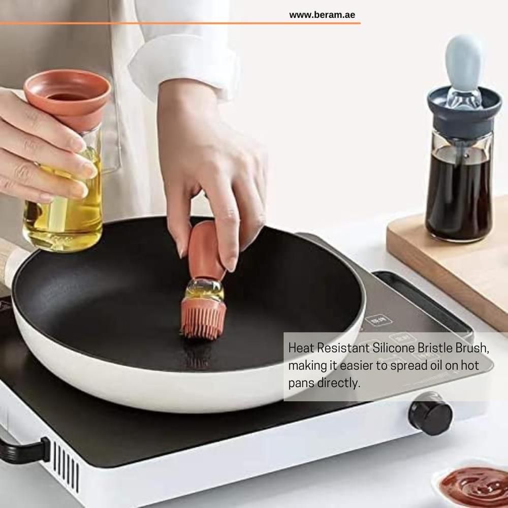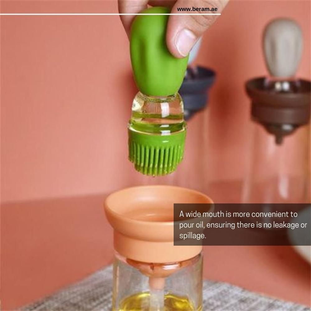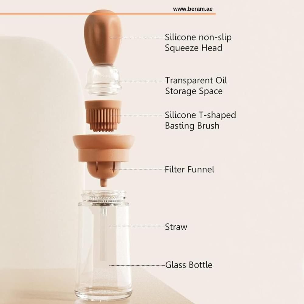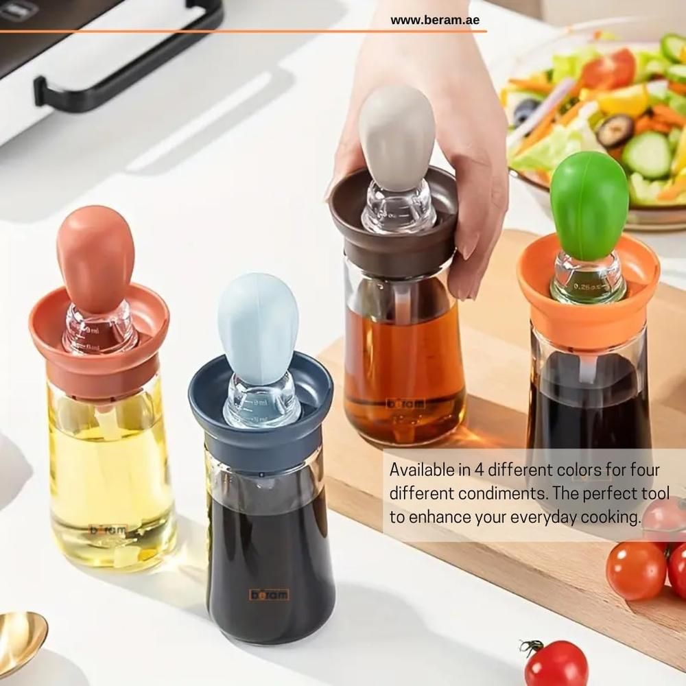 BERAM Oil Dispenser, Bottle with Brush, Set of 4, Used for Barbecue, Vinegar or Sauce, Glass Storage, and Dispenser Container with Silicone Basting Brush for Kitchen, Baking, Air Fryer, 2 in 1