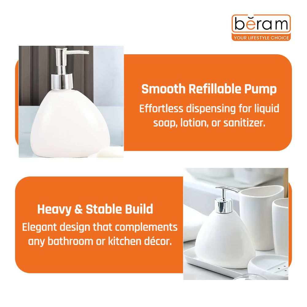 Beram Pear-Shaped Soap Dispenser Glossy Ceramic Lotion Pump Bottle Elegant Countertop Accessory for Hand Soap Sanitizer or Shampoo Reusable Ceramic Dispenser (Plain Pear White)