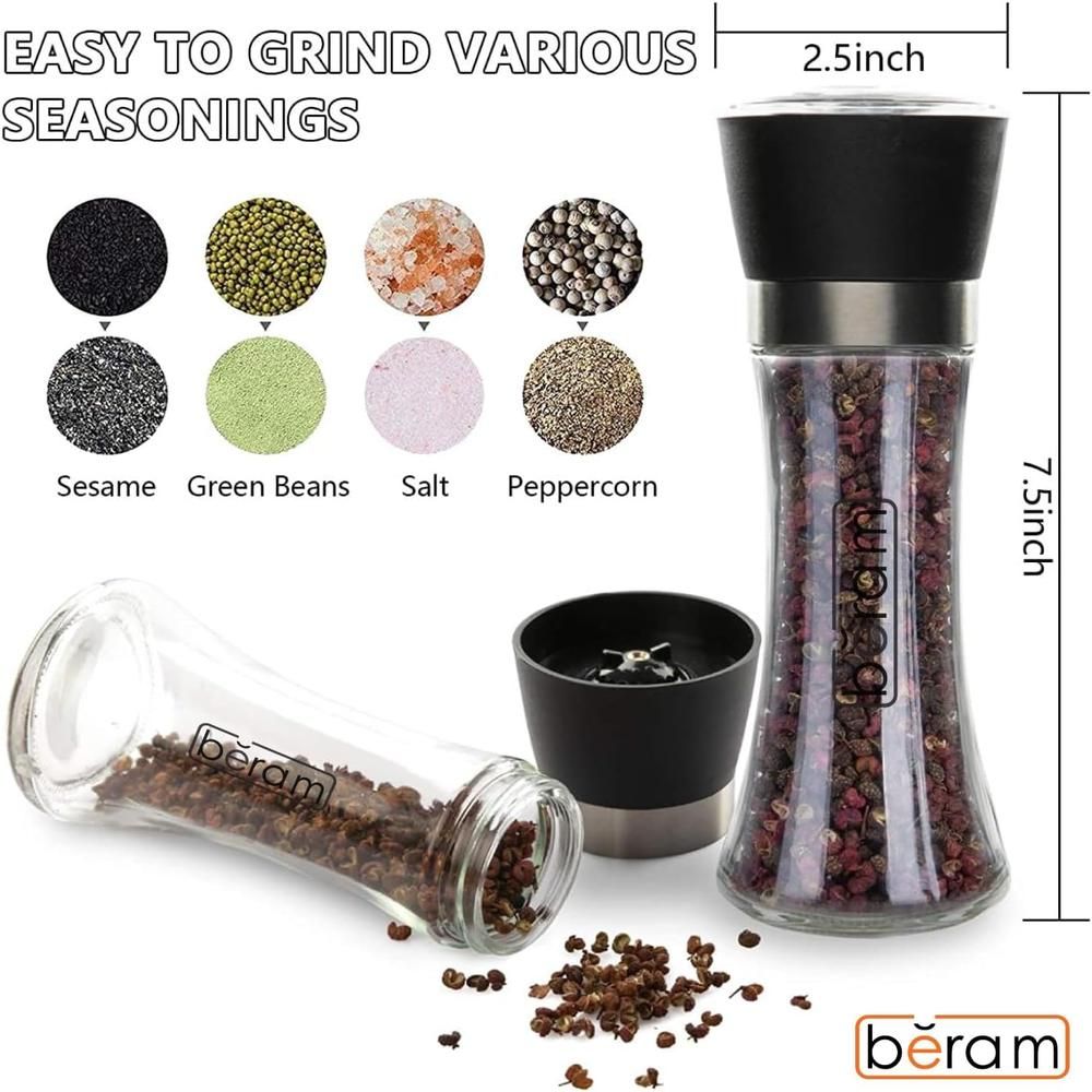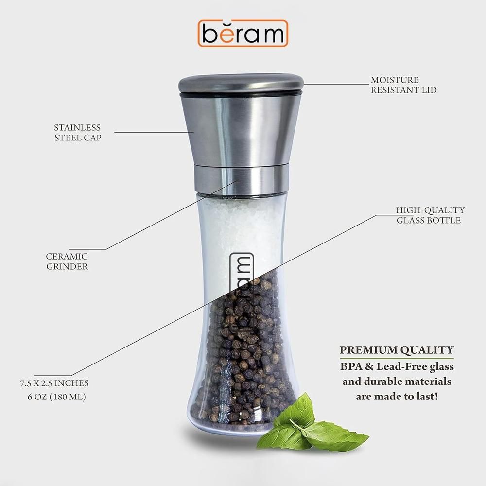 Upgrade your seasoning experience with the BERAM Salt and Pepper Shaker Set, crafted from premium stainless steel for long-lasting durability and a sleek modern look