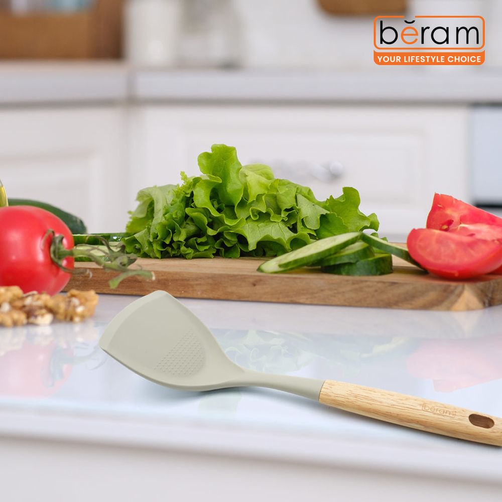 Beram Silicone Kitchen Utensil Set With Natural Wooden Handles – Heat Resistant, Non-Stick Safe, Bpa-Free Cooking Tools (Beige) (Single Shovel)