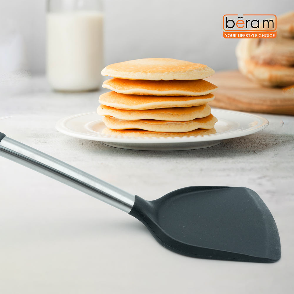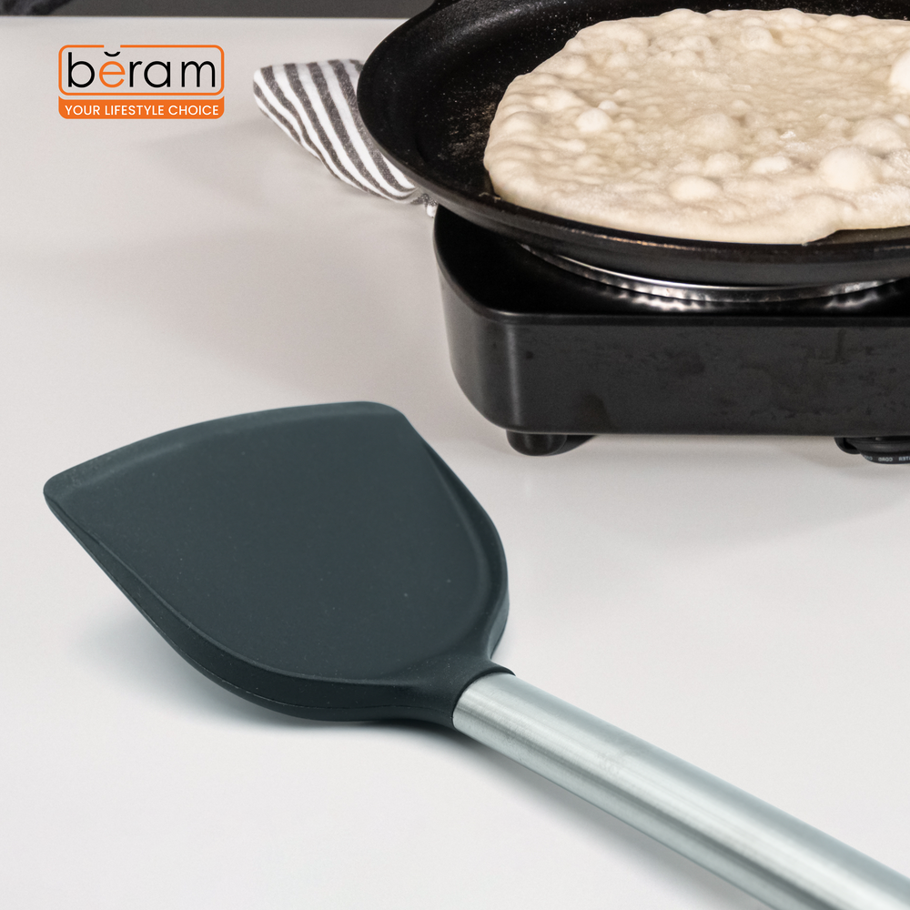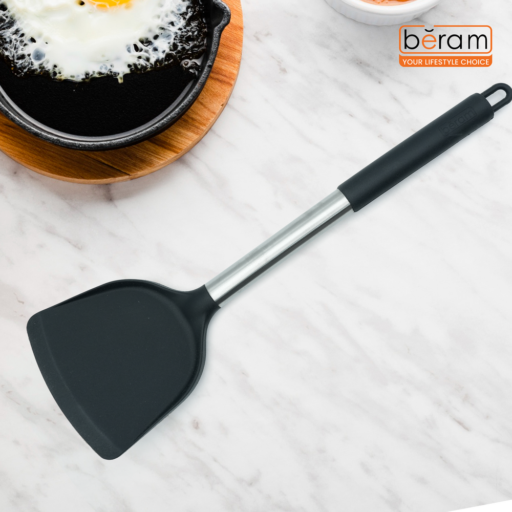 Beram Silicone Shovel With Stainless Steel Handles Heat Resistant Kitchen Utensil Non-Stick Safe Bpafree Cooking Tools–Black (Single Shovel)