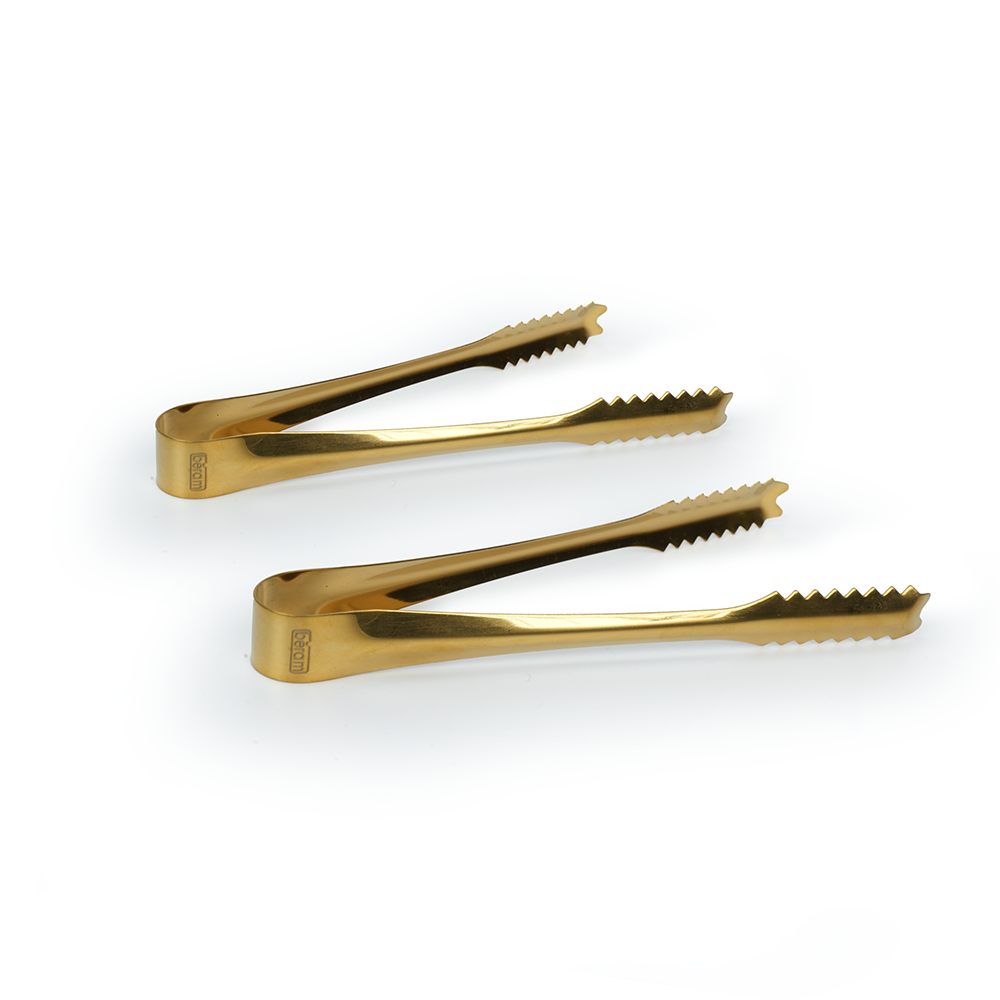 Beram Sugar Tong – Stainless Steel Mini Tongs for Sugar Cubes, Ice, Snacks & Tea Parties – Durable, Rust-Resistant (2, Gold, Zig Zag 15)