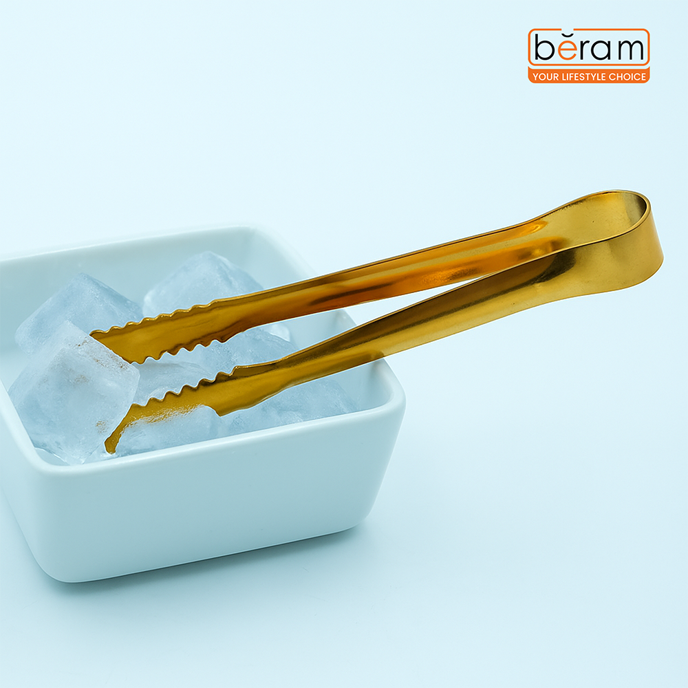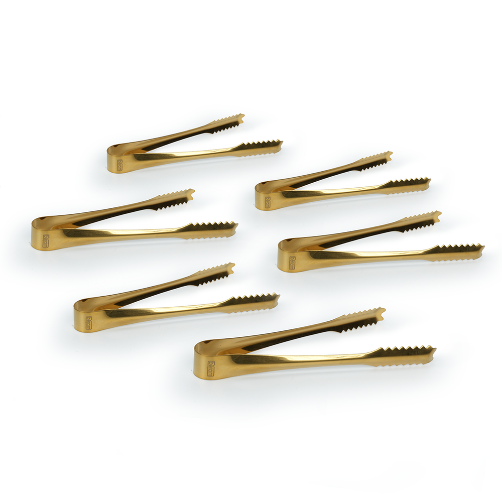 Beram Sugar Tong – Stainless Steel Mini Tongs for Sugar Cubes, Ice, Snacks & Tea Parties – Durable, Rust-Resistant (6, Gold, Zig Zag 15)