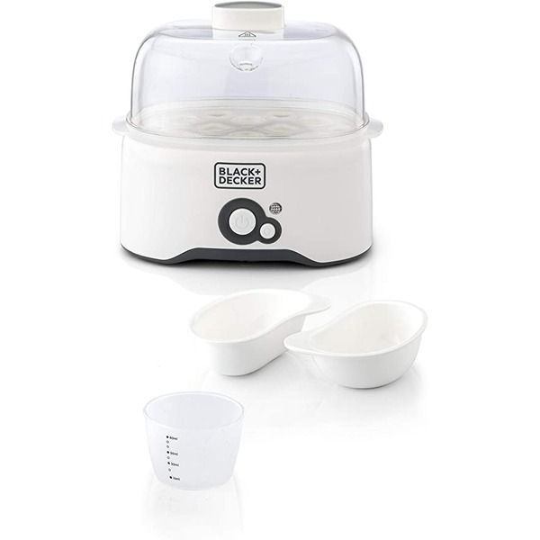 BLACK+DECKER 280W 6 Piece Egg Cooker with Cooking Rack and 2 Poaching Pans | Dry Boil Auto Shutoff | Transparent Cover | White Body | For Perfect Eggs | EG200-B5 | 2 Years Warranty
