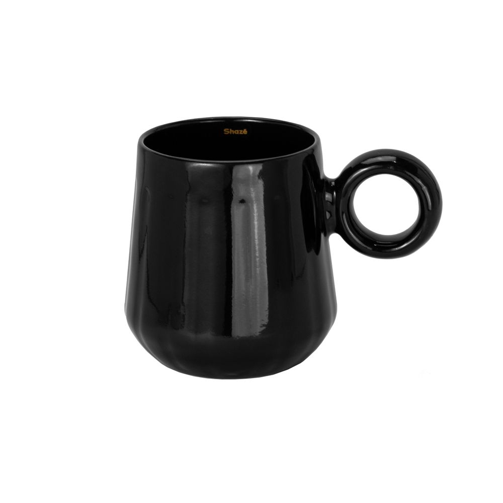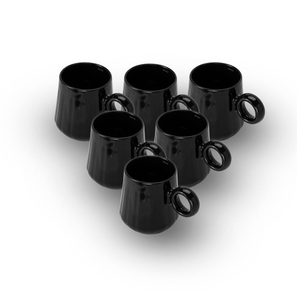 Black Mugs Ceramic - Set of 6pc 370ml capacity