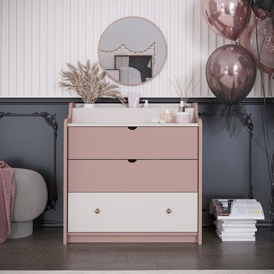 Blossom 1 Drawer Night Stand-Blush Pink+Light Beige