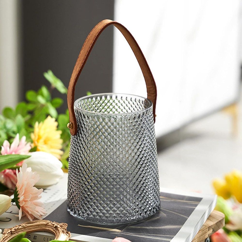 Blush Series Transparent Glass Bucket Vase Size 15cm*12cm