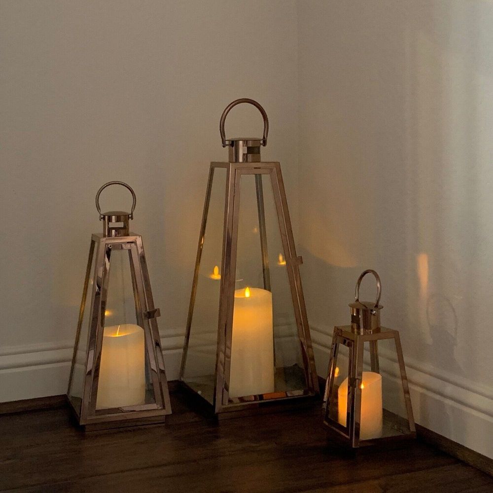 Blush Elegant Copper Color Lantern Set of 03 Pcs Size (50cm*18cm, 40cm*12cm, 23cm*10cm)