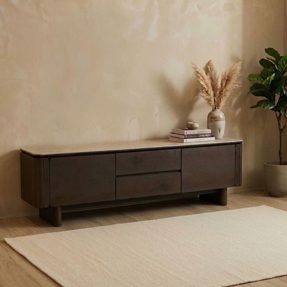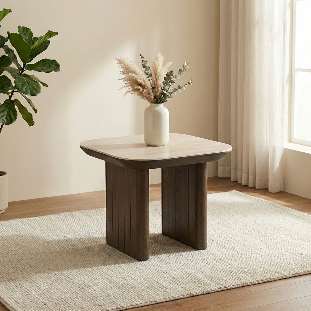 Brookside Stone Top Coffee Table-Beige/Oak Veneer
