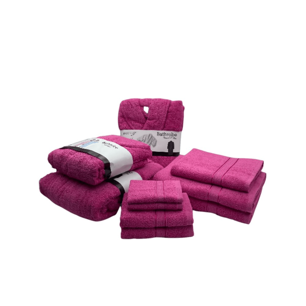 Daffodil Face Towel (30 x 30 Cm) Hand Towel (40 x 60 Cm) Bath Towel (70 x 140 Cm) Hand Towel (60 x 110 Cm) Bathrobe Adult, 8yr Kid Fuchsia Pink Stripe Diamond Dobby 100% Cotton - (Set of 10) 500 Gsm