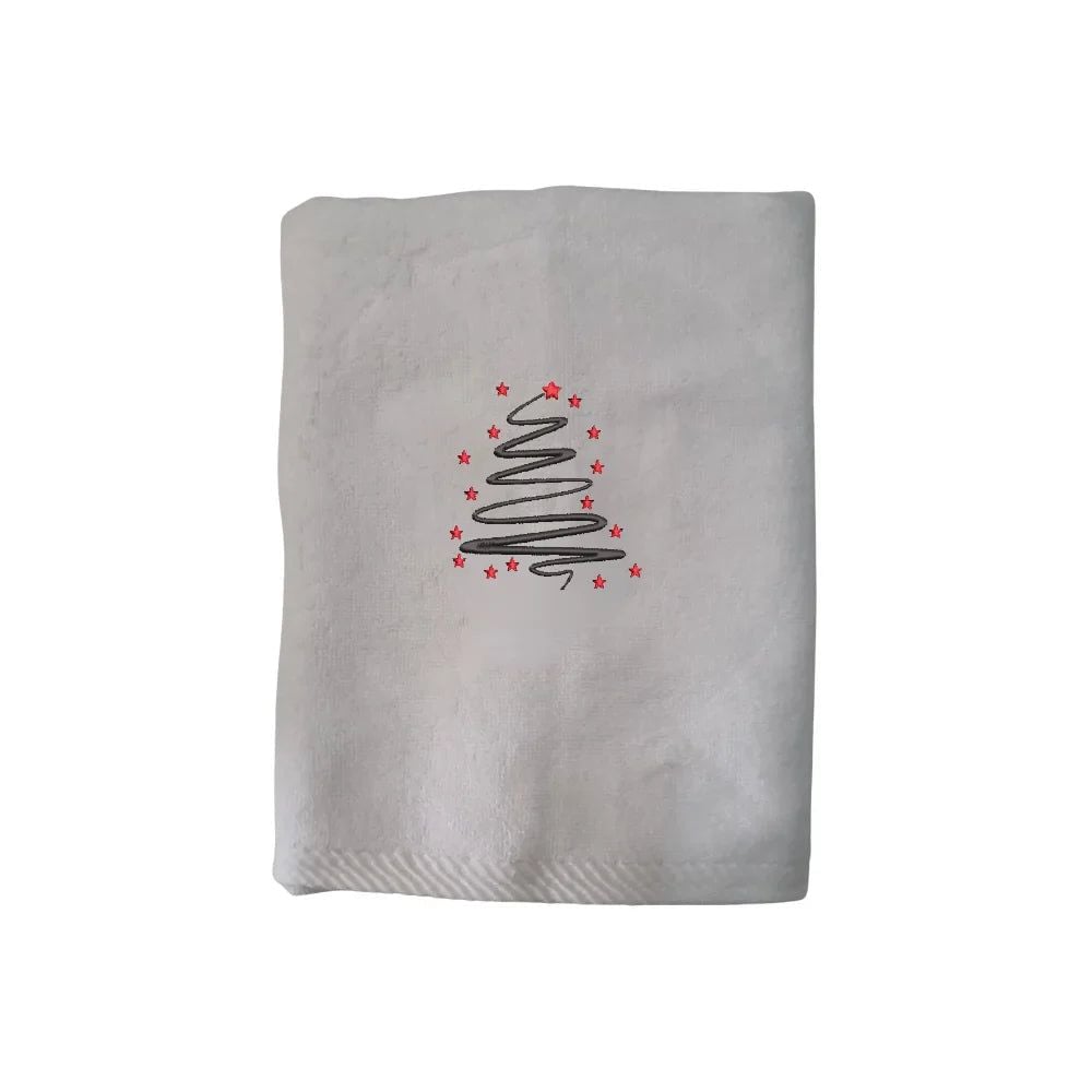 Iris Christmas Embroidered 50 x 80 Cm White Hand Towel - "Starry Christmas Tree" Design 100% Cotton - Premium Holiday Collection