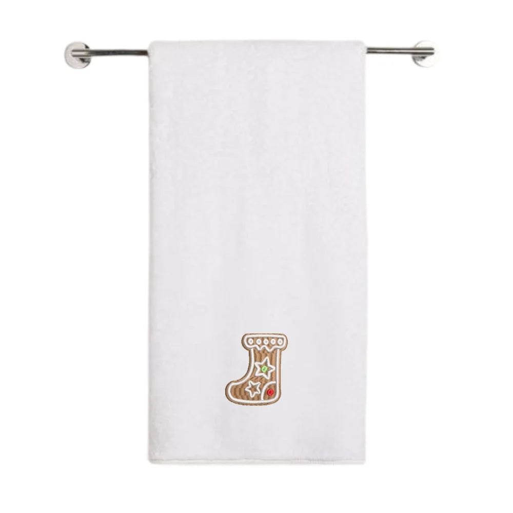 Iris Christmas Embroidered 70 x 140 Cm White Bath Towel - "Gingerbread Stocking Cookie" Design 100% Cotton - Premium Holiday Collection
