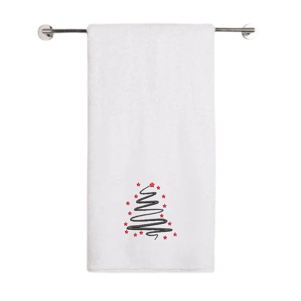 Iris Christmas Embroidered 70 x 140 Cm White Bath Towel - "Starry Christmas Tree" Design 100% Cotton - Premium Holiday Collection