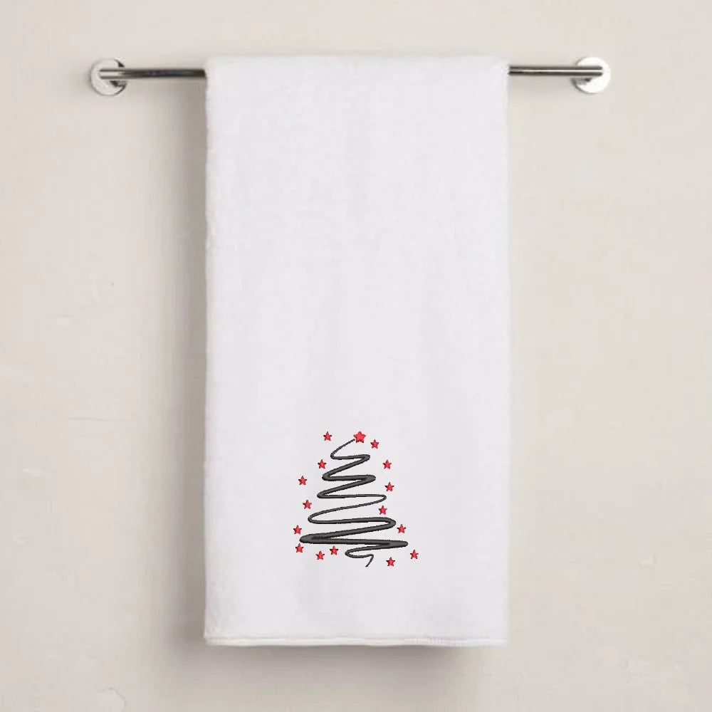 Celebrate the magic of the holidays with this BYFT Starry Christmas Tree embroidered towel — a perfect blend of elegance and festive cheer.