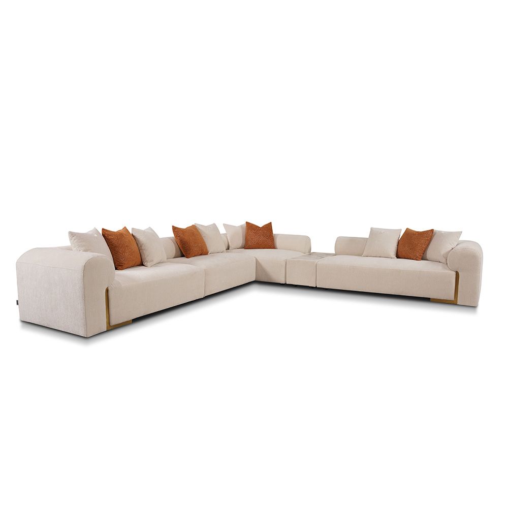 Cade Sectional Corner Fabric Sofa - Beige/Orange