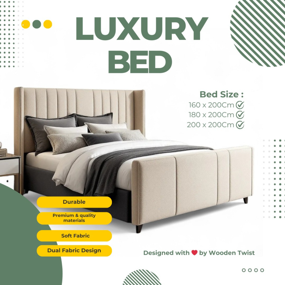 Calida Luxury Design Bed for Modern Bedroom In Soft Fabric (Queen)