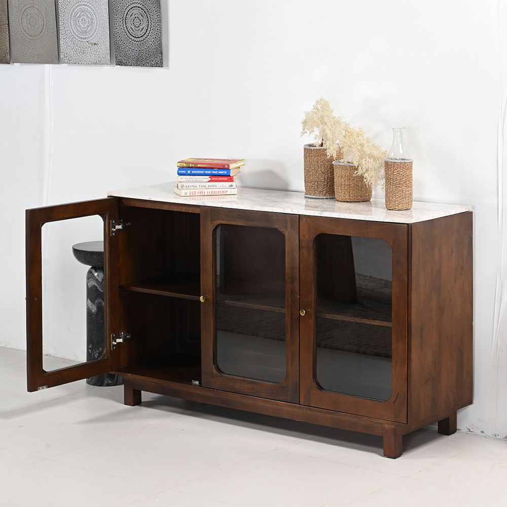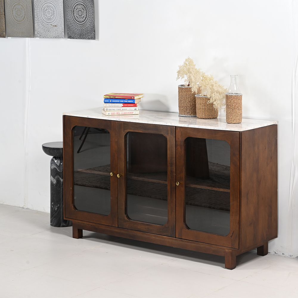 Camelle 3 Door Marble Top Buffet Cabinet -White/Brown