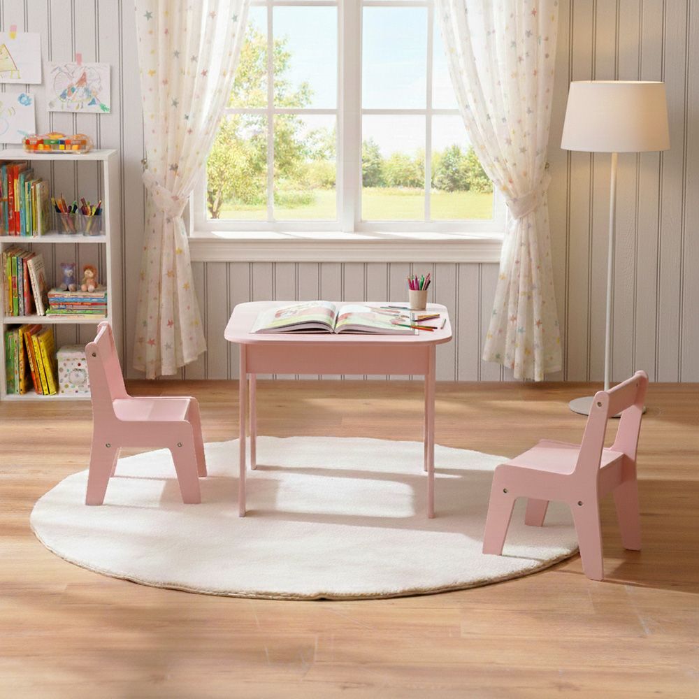 Candy 1+2 Kids Table With Storage/ Lego Top & Chair Set-Pink