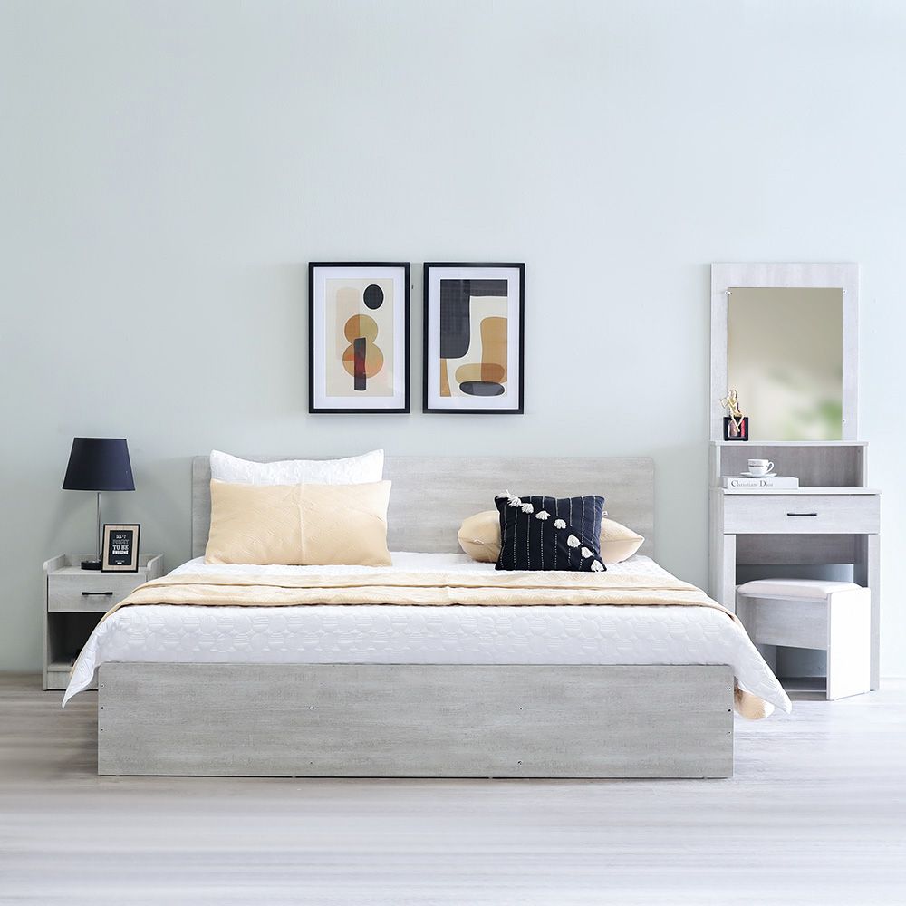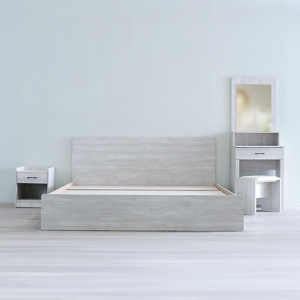 Besides the bed, this set also features a nightstand, a dresser with a mirror, and a matching stool. The nightstand provides a convenient surface to place your essentials, keeping them within easy reach.