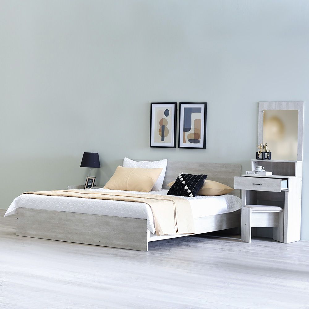 The bedroom set is crafted with a combination of high-quality MDF (Medium-Density Fiberboard) and particle board, ensuring durability and stability for long-lasting use.