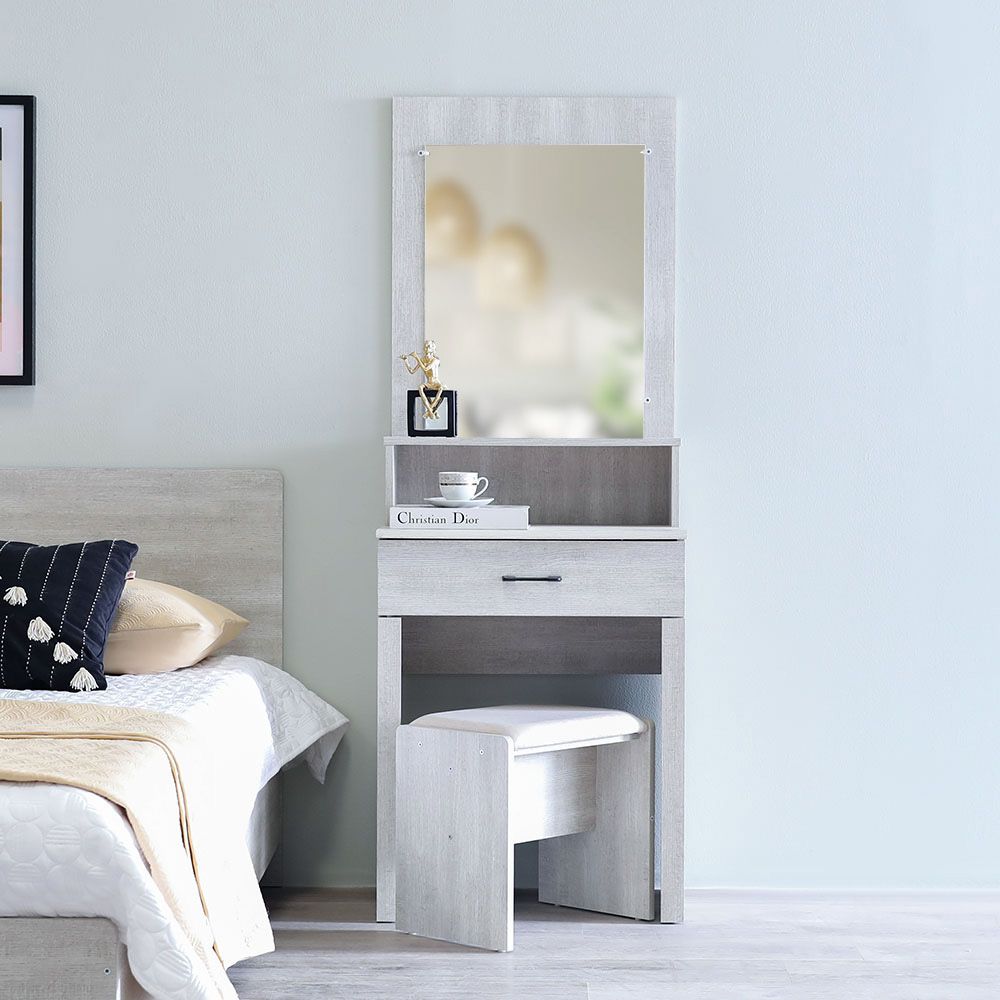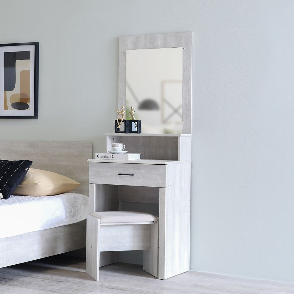 The dresser offers ample storage space for your clothing and accessories, while the mirror adds a touch of glamour and functionality. The matching stool provides a comfortable seat for dressing or simply relaxing in style.