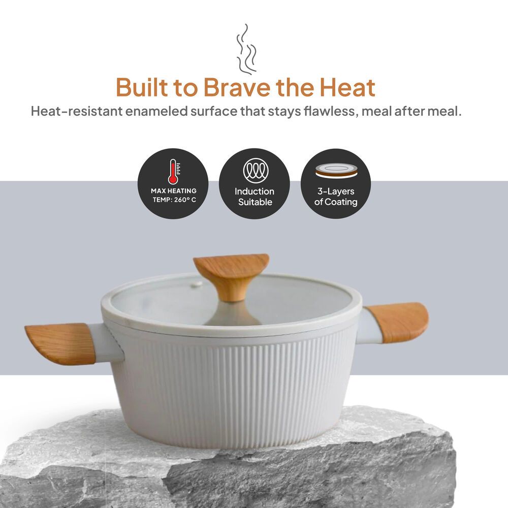 Please contact our customer service team for any warranty claims or questions regarding the Danube Home cookware set purchased from our ecommerce store.