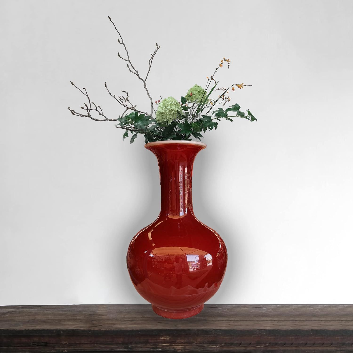 Chinese Ceramic Lang Vase - Elegant Red Flower Arrangement Vase for Home Decoration (Vase 1)