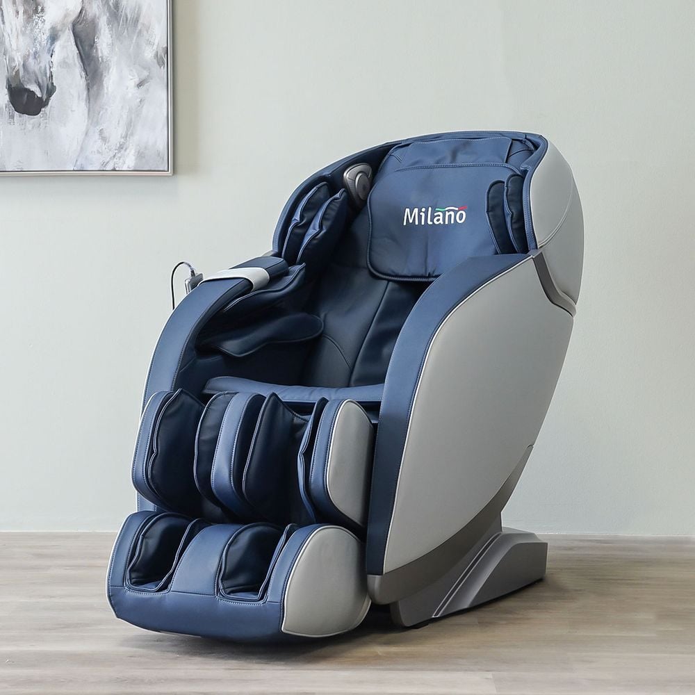 The Cimarro Leather Massage Chair in the combination of blue and silver is an ideal relaxing massage chair.