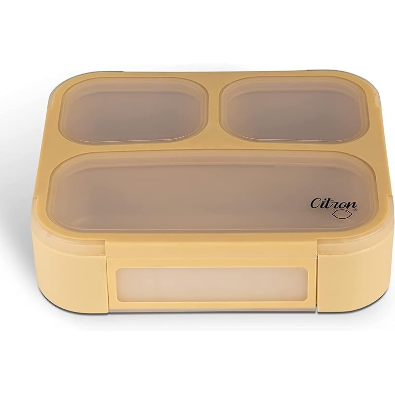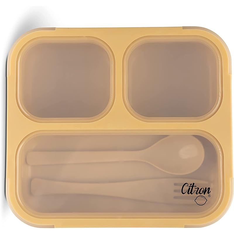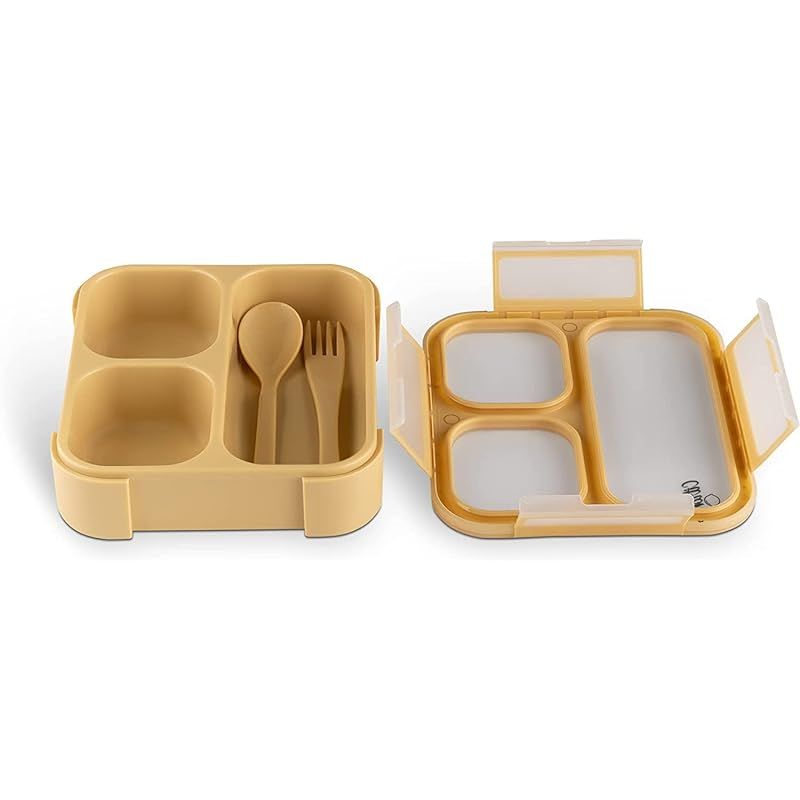 Skip Hop Citron- Bento Box Lunchbox comes with Fork and Spoon | Snack and Portion Control Containers for Kids & Adults | Leakproof and BPA Free- Yellow