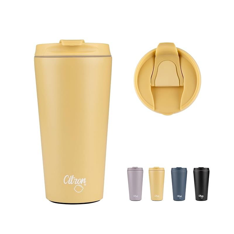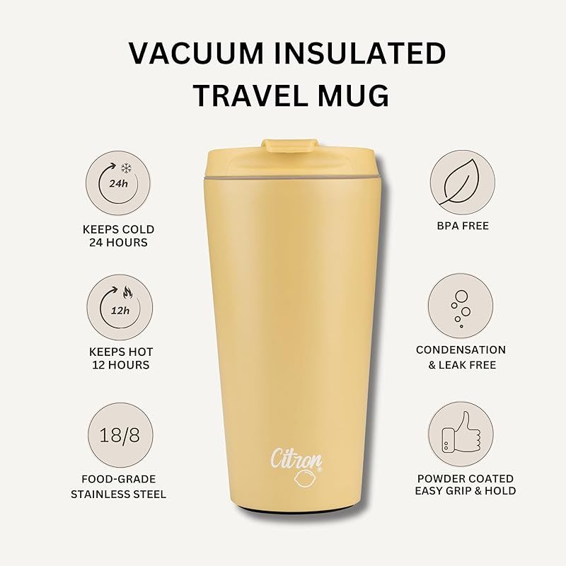 Skip Hop Citron- Double Wall Vacuum Insulated Coffee Travel Mug | For Hot & Cold Drinks | BPA Free & Leak Proof- 370ml Yellow