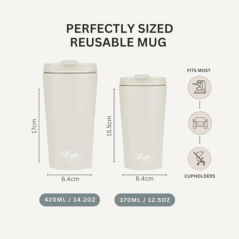 Benefits: Our Insulated coffee mugs are designed to fit under most coffee machines and be placed in a large majority of cup holders it is the perfect brew companion to bring along on commutes of all kinds.