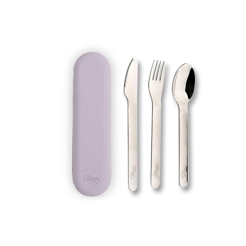 Skip Hop Citron- Stainless Steel Cutlery Set | 3 pc Silverware Fork, Spoon and Knife BPA Free Set for Kids- Purple
