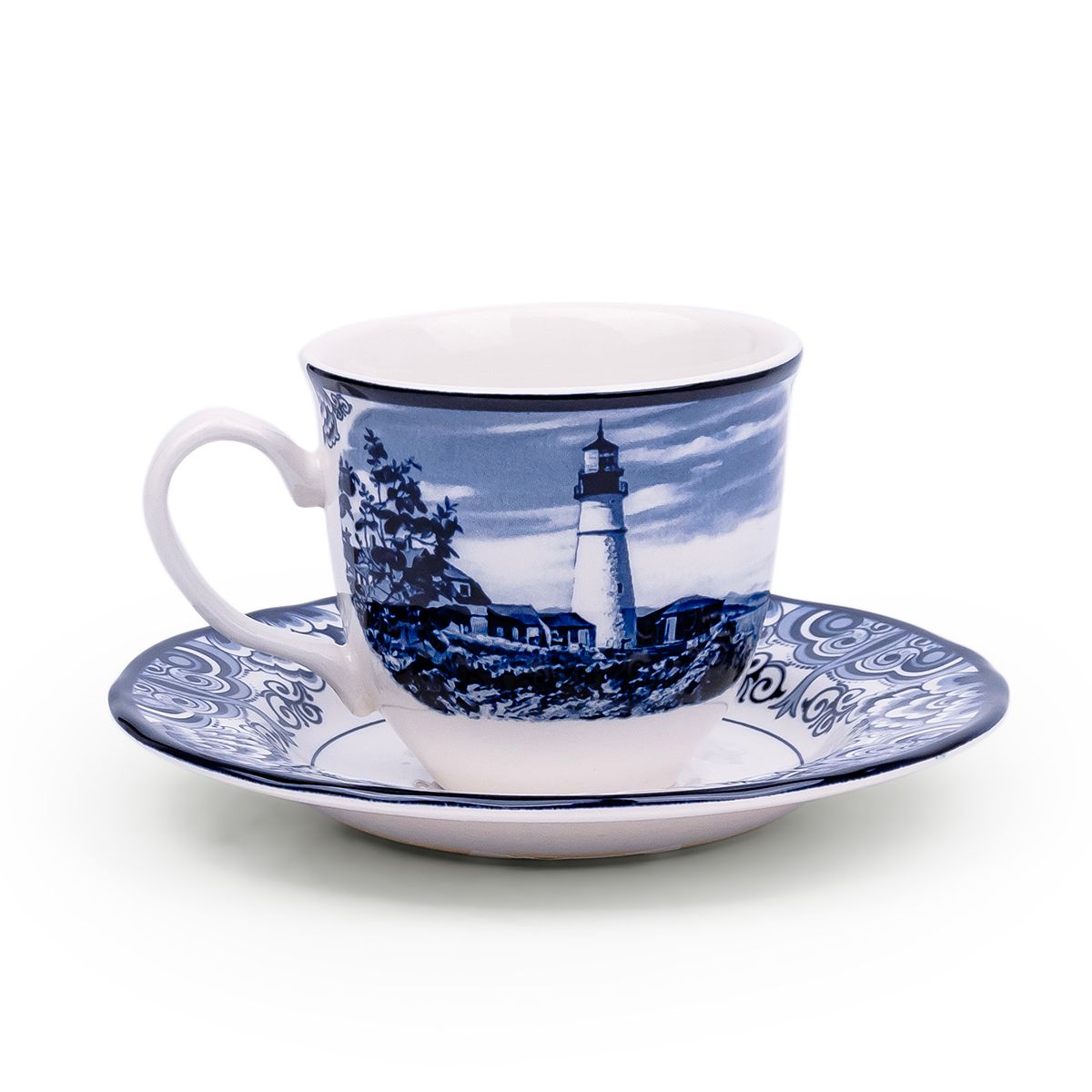 Claytan Halcyon Blue 200 ml Porcelain Coffee & Tea Cup with Matching Saucer (Set Of 1)