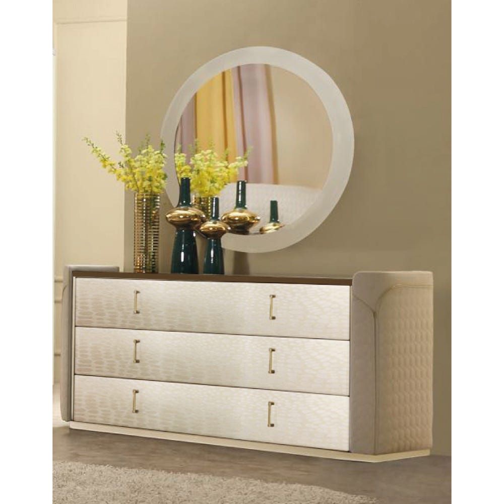 Cleotilde Dresser with Mirror and Stool - Marble /