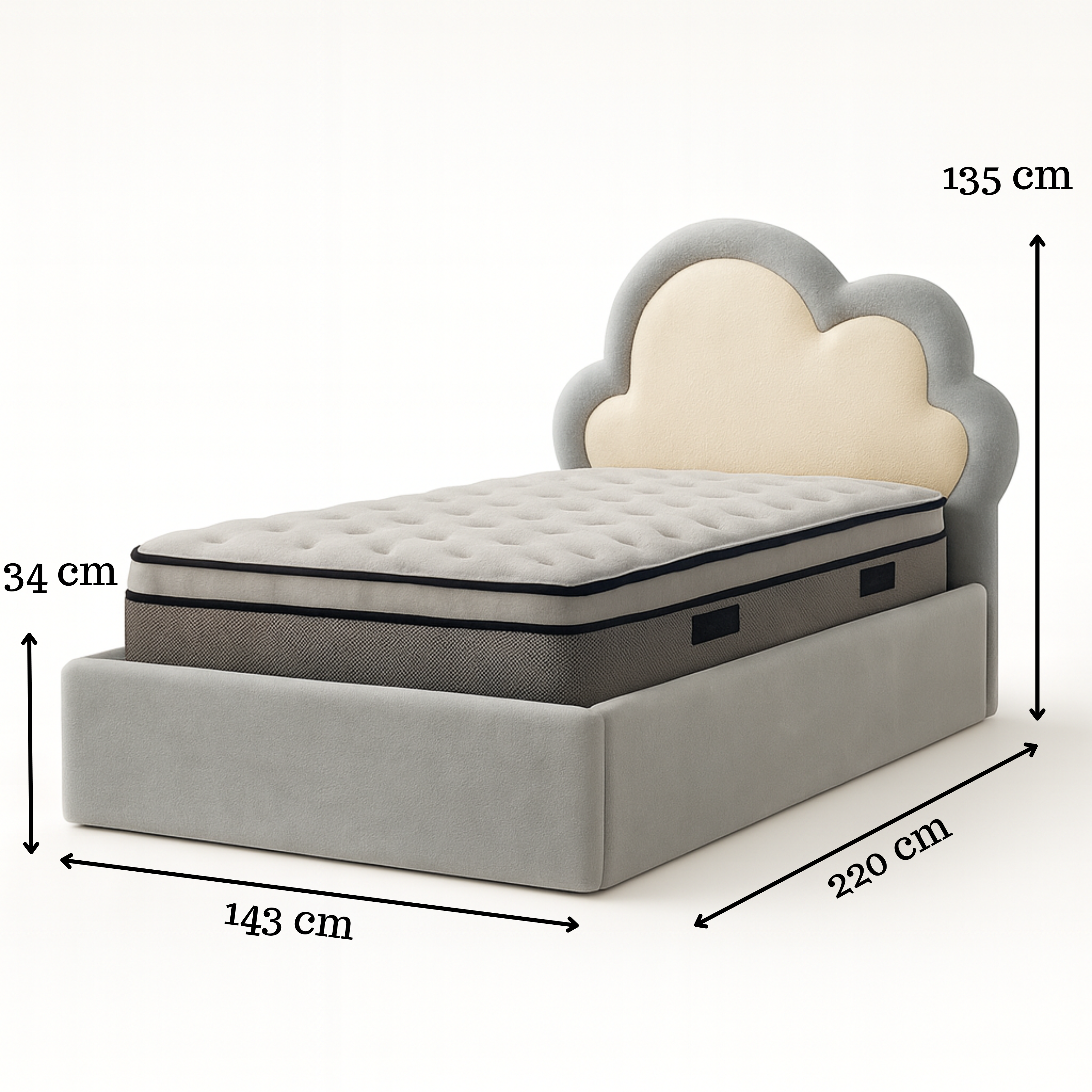 Cloud Dreamer Kids Bed with Two-Tone In Light Grey & Cream