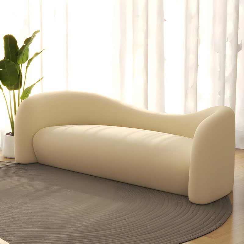 Comfynest Scandinavian Settee Fabric Living Room Tuxedo Arm Curved White Seating-170.18 x 83.82 x 78.74 cm Off-White