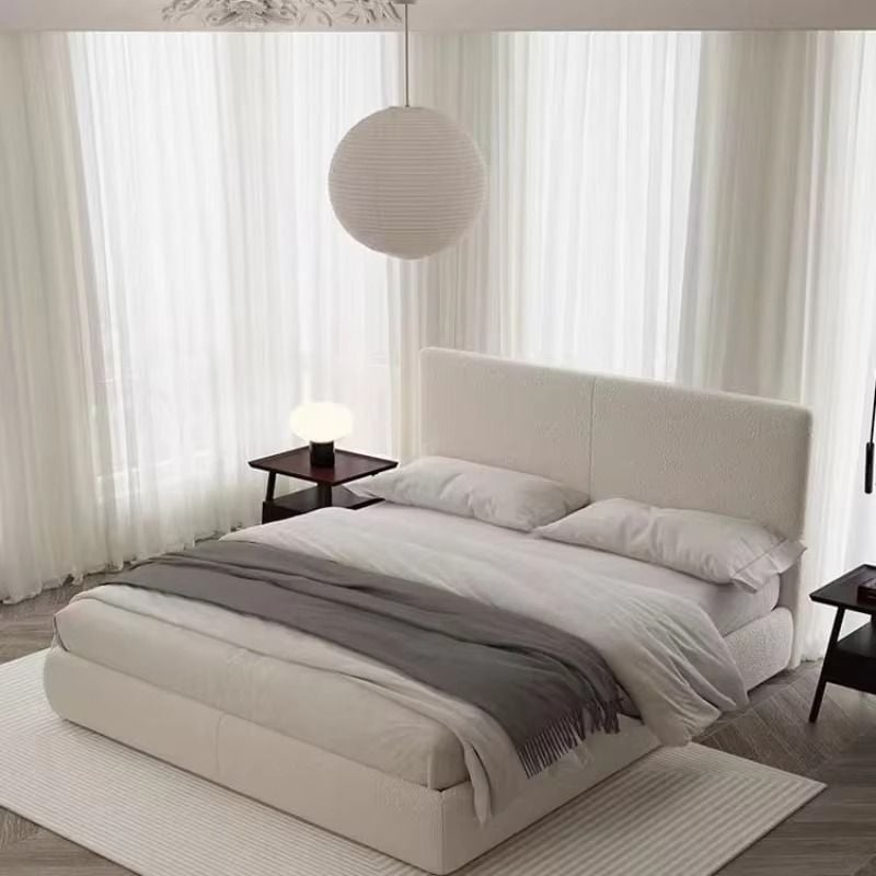 Contemporary Platform Bed – Soft Velvet Upholstery – Low-Profile Minimalist Design – White – Queen Size 150 × 200
