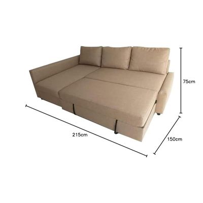 Convertible Sofa Cum Bed L-Shape Corner Sofa Plus Diwan Bed with Storage Box & Cushion for Living Room, Home, Office, Apartment, Studio Room Size 215x150x75 Centimeters KSB230