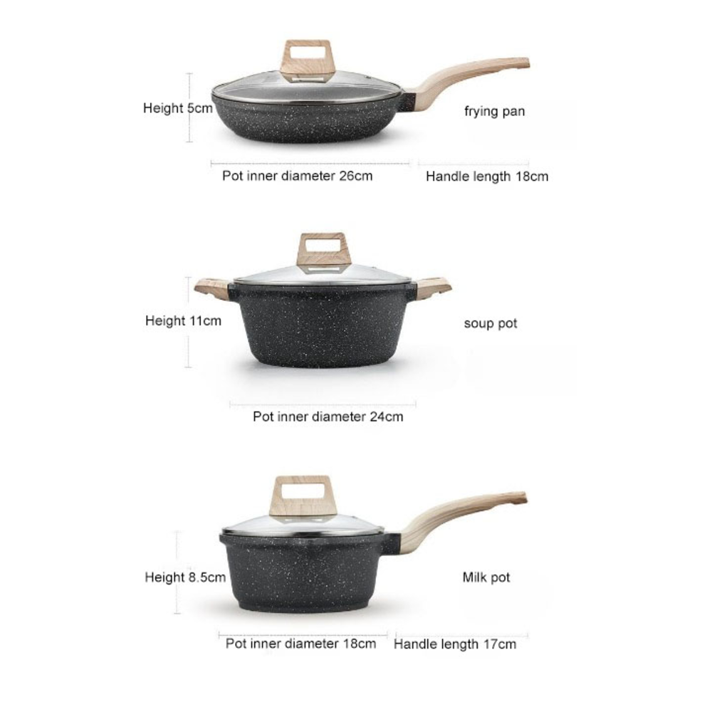 Cooking Set For Variety Cooking Healthy Cooking Non Stick Easy to Clean Fast Heating, Multi-purpose - Black
