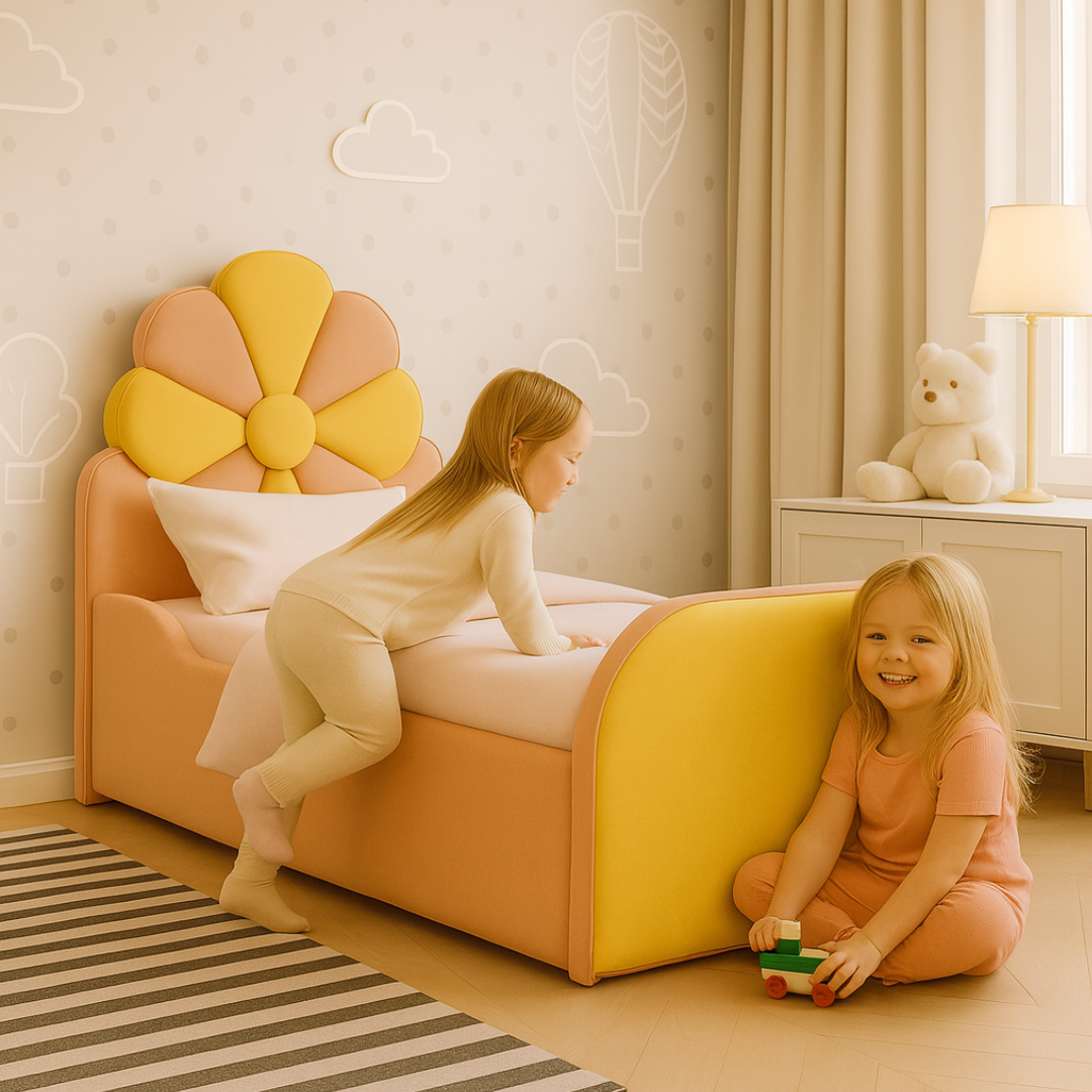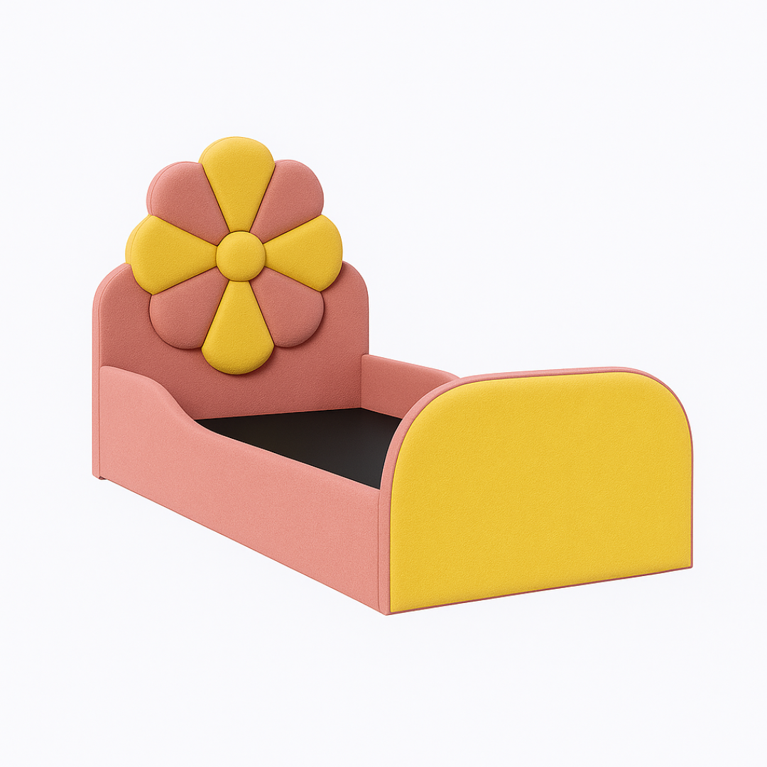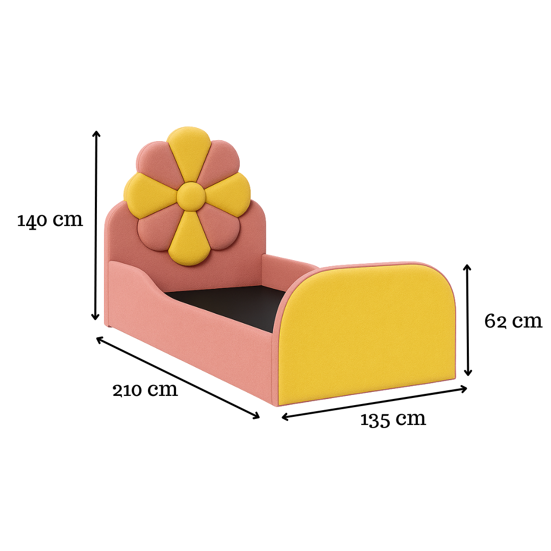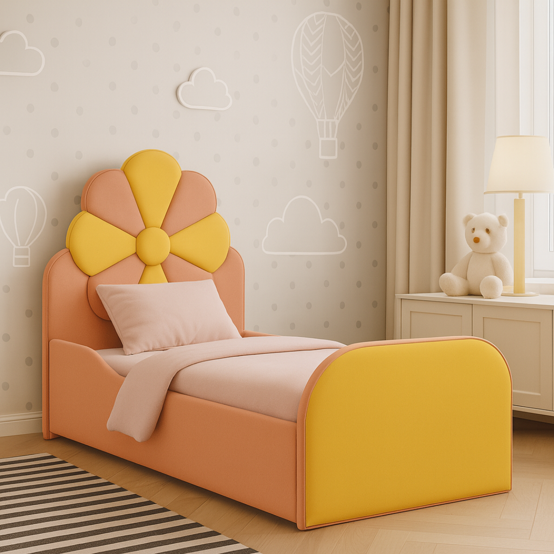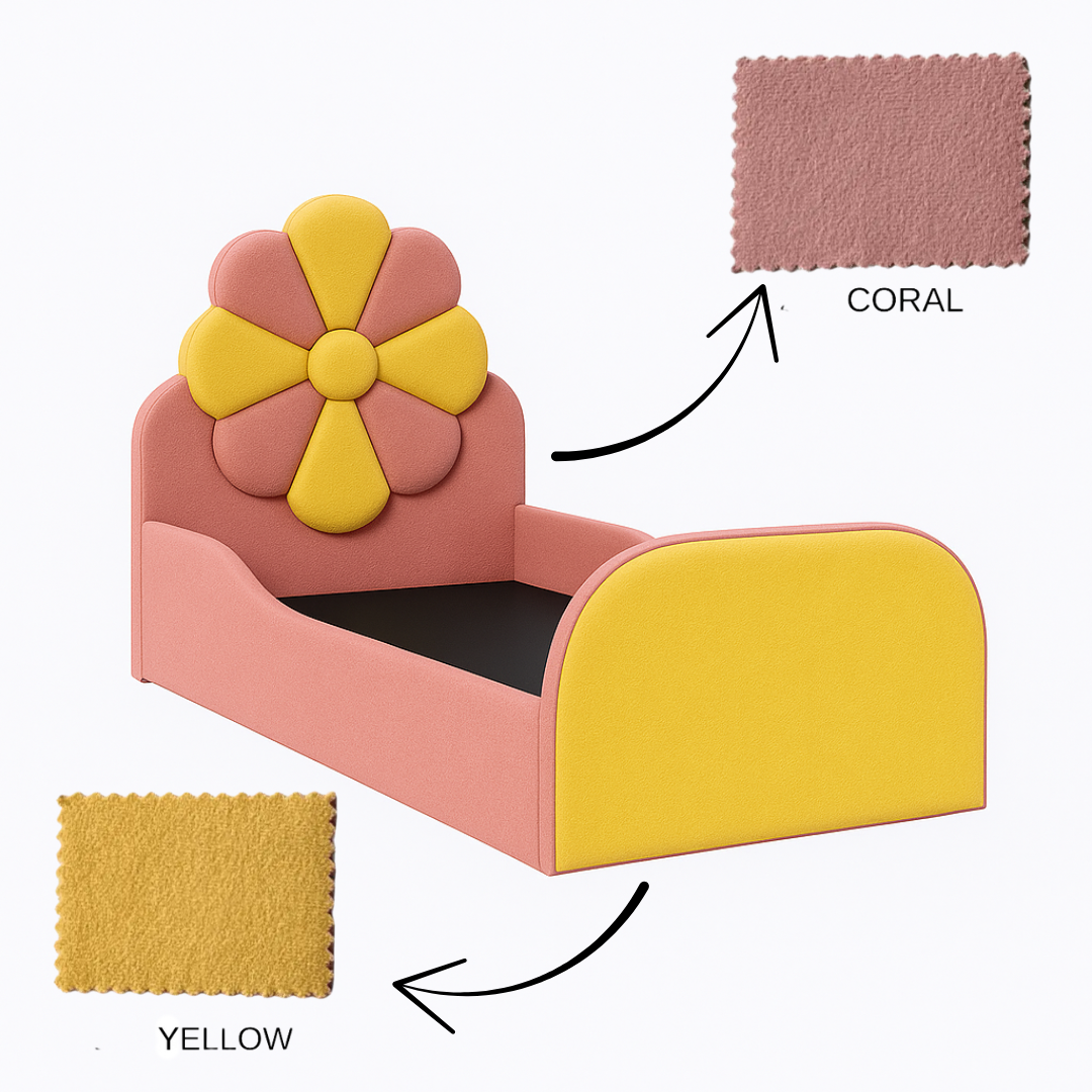 Coral & Yellow Kids Flower Bed Modern Upholstered Bed with Safety Sides