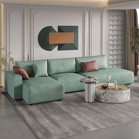 Costa Modular 4 Seater L-Shape Velvet Sofa adds a welcoming and relaxing vibe to your home with its soft padding and textile.