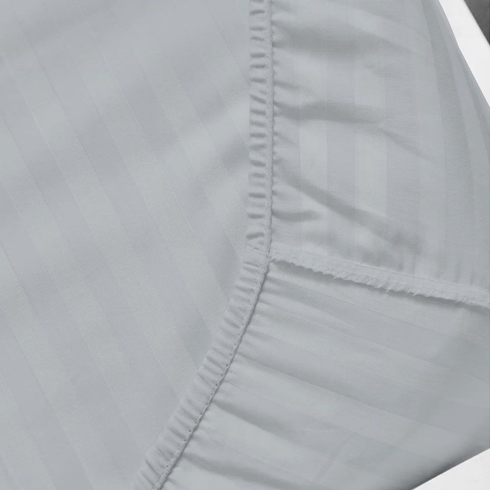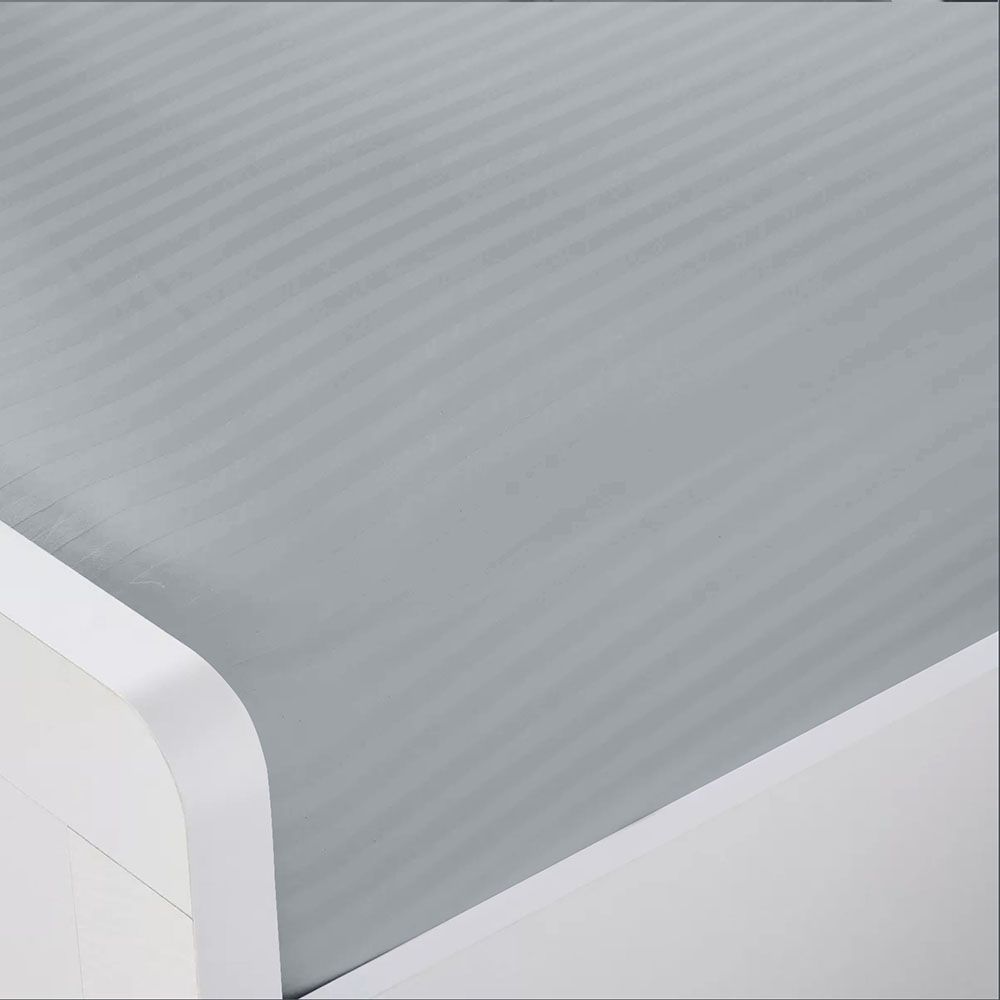 Cotton Home 3pc Stripe Silver Fitted SheetSet, 2 Pillowcase 50x75+15 Queen
