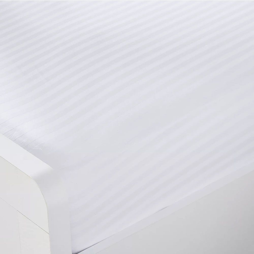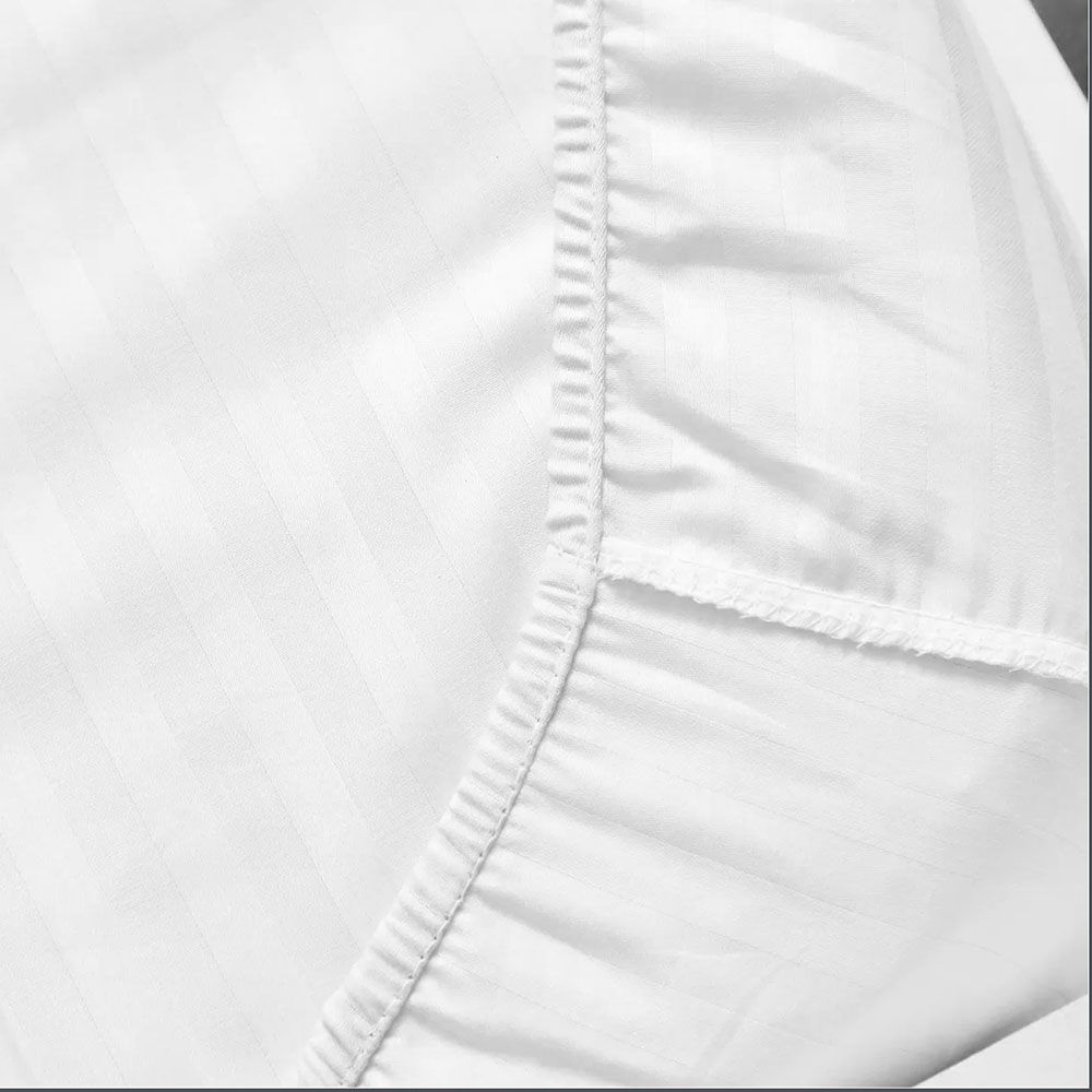 Cotton Home 3pc Stripe White Fitted SheetSet, 2 Pillowcase 50x75+15 Queen